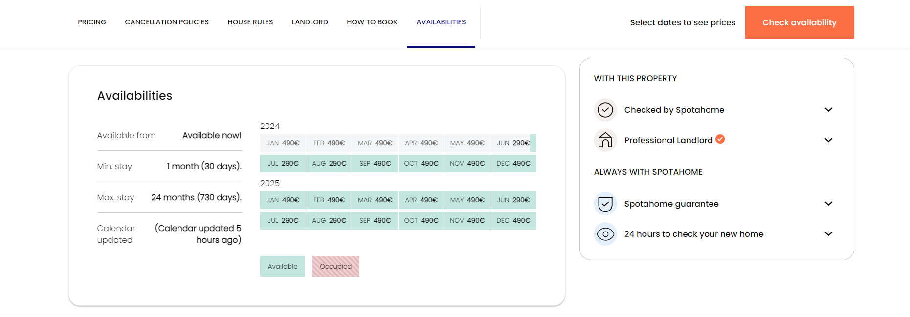Los propietarios pueden fijar un precio diferente para cada mes civil para ajustarse en función de la estacionalidad.